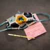 Mund-Nase-Bedeckung mit Filter und Nasenbügel aus zweilagigem Baumwollstoff mit Gummibändern.